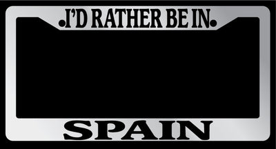 Chrome METAL License Plate Frame I'd Rather Be In Spain Auto Accessory Mod-GRAPH9856236-10097