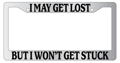 Chrome METAL License Plate Frame I MAY GET LOST BUT I WONT GET STUCK Mod-GRAPH9856236-9447