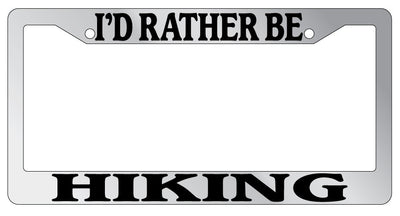 Chrome METAL License Plate Frame I'D RATHER BE HIKING Mod-GRAPH9856236-9504