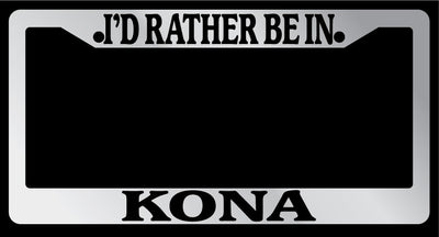 Chrome METAL License Plate Frame I'd Rather Be In Kona Auto Accessory Mod-GRAPH9856236-9804