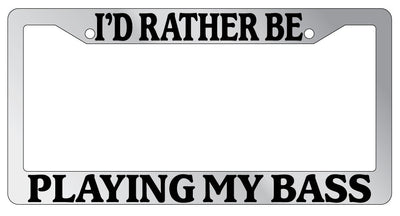 Chrome METAL License Plate Frame I'D RATHER BE PLAYING MY BASS Mod-GRAPH9856236-9493