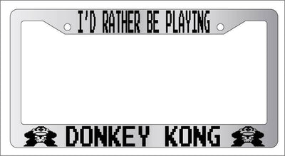 Chrome METAL License Plate Frame I'D RATHER BE PLAYING DONKEY KONG Mod-GRAPH9856236-9684