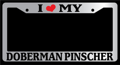 Chrome METAL License Plate Frame I HEART MY DOBERMAN PINSCHER Auto Accessory 378 Mod-GRAPH9856236-10107