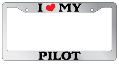 Chrome METAL License Plate Frame I HEART MY PILOT Auto Accessory 1845 Mod-GRAPH9856236-9053