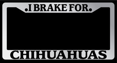 Chrome METAL License Plate Frame I BRAKE FOR CHIHUAHUAS Auto Accessory Mod-GRAPH9856236-8926