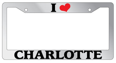 Chrome METAL License Plate Frame I HEART CHARLOTTE Auto Accessory 1450 Mod-GRAPH9856236-8202