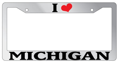 Chrome METAL License Plate Frame I HEART MICHIGAN Auto Accessory 995 Mod-GRAPH9856236-8212