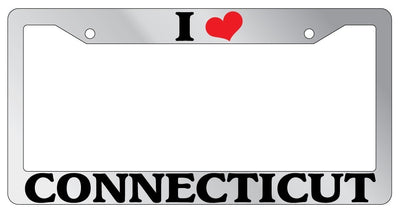 Chrome METAL License Plate Frame I HEART CONNECTICUT Auto Accessory 1197 Mod-GRAPH9856236-8203