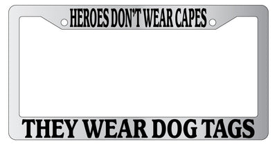 Chrome METAL License Plate Frame HEROES DON'T WEAR CAPES THEY WEAR DOG TAGS 151 Mod-GRAPH9856236-8960