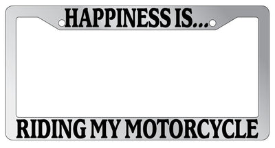 Chrome METAL License Plate Frame HAPPINESS IS...RIDING MY MOTORCYCLE Mod-GRAPH9856236-9665
