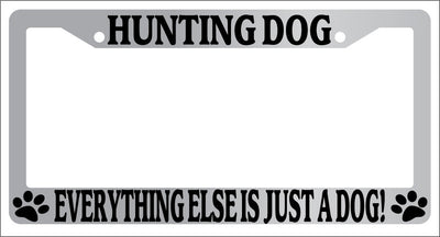 Chrome METAL License Plate Frame HUNTING DOG EVERYTHING ELSE IS JUST A DOG! 422 Mod-GRAPH9856236-8309