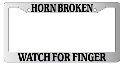 Chrome METAL License Plate Frame HORN BROKEN WATCH FOR FINGER Auto Accessory Mod-GRAPH9856236-9767