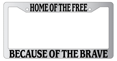 Chrome METAL License Plate Frame HOME OF THE FREE BECAUSE OF THE BRAVE 153 Mod-GRAPH9856236-9454