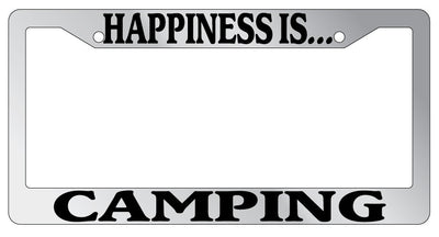 Chrome METAL License Plate Frame HAPPINESS IS...CAMPING Mod-GRAPH9856236-8080