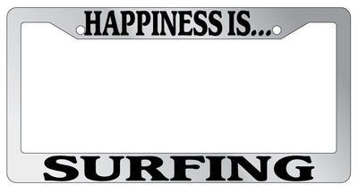 Chrome METAL License Plate Frame HAPPINESS IS...SURFING Mod-GRAPH9856236-8089