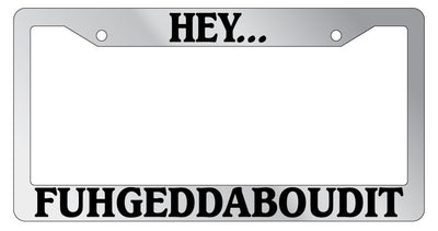 Chrome METAL License Plate Frame HEY...FUHGEDDABOUDIT 872 Mod-GRAPH9856236-8062