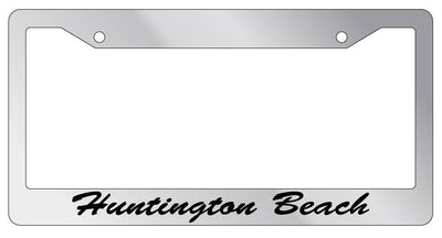 Chrome METAL License Plate Frame Huntington Beach Cursive Auto Accessory 1471 Mod-GRAPH9856236-8882