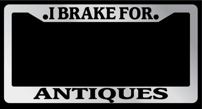 Chrome METAL License Plate Frame I BRAKE FOR ANTIQUES Auto Accessory 879 Mod-GRAPH9856236-8925