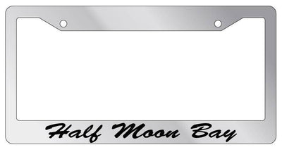 Chrome METAL License Plate Frame Half Moon Bay Cursive Auto Accessory 1339 Mod-GRAPH9856236-8876