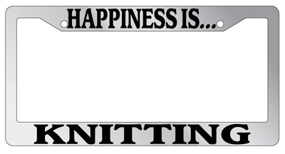 Chrome METAL License Plate Frame HAPPINESS IS...KNITTING Mod-GRAPH9856236-8084