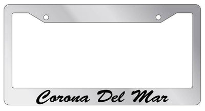 Chrome METAL License Plate Frame Corona Del Mar Cursive Auto Accessory 1557 Mod-GRAPH9856236-8874