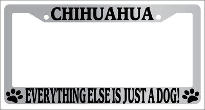 Chrome METAL License Plate Frame CHIHUAHUA EVERYTHING ELSE IS JUST A DOG! -333 Mod-GRAPH9856236-8295