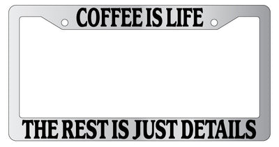 Chrome METAL License Plate Frame COFFEE IS LIFE THE REST IS JUST DETAILS Auto Mod-GRAPH9856236-8690