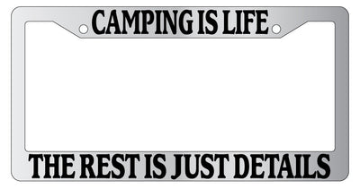 Chrome METAL License Plate Frame CAMPING IS LIFE THE REST IS JUST DETAILS Auto Mod-GRAPH9856236-8688