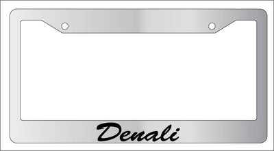 Chrome METAL License Plate Frame CURSIVE DENALI Auto Accessory 1982 Mod-GRAPH9856236-8342