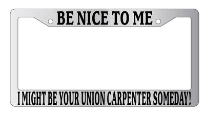 Chrome METAL License Plate BE NICE TO ME I MIGHT BE YOUR UNION CARPENTER SOMEDAY Mod-GRAPH9856236-9269