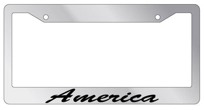 Chrome METAL License Plate Frame AMERICA CURSIVE Auto Accessory 1048 Mod-GRAPH9856236-8991