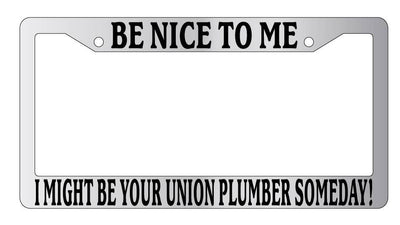 Chrome METAL License Plate BE NICE TO ME I MIGHT BE YOUR UNION PLUMBER SOMEDAY! Mod-GRAPH9856236-9270