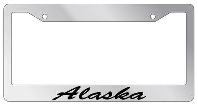 Chrome METAL License Plate Frame ALASKA CURSIVE Auto Accessory 1044 Mod-GRAPH9856236-7772