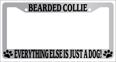 Chrome METAL License Plate Frame BEARDED COLLIE EVERYTHING ELSE IS JUST A DOG! Mod-GRAPH9856236-8286