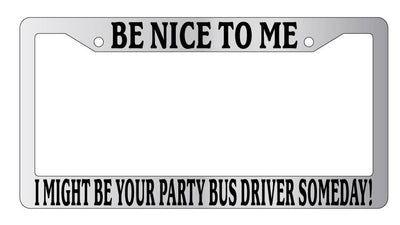 Chrome METAL License Plate BE NICE TO ME I MIGHT BE YOUR PARTY BUS DRIVER Mod-GRAPH9856236-9268