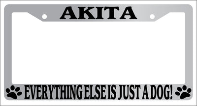 Chrome METAL License Plate Frame AKITA EVERYTHING ELSE IS JUST A DOG! Auto Mod-GRAPH9856236-8283