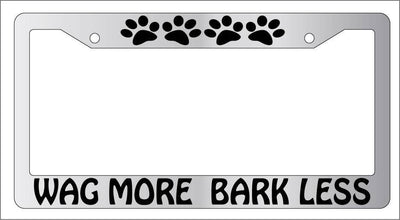 Chrome License Plate Frame WAG MORE BARK LESS Auto Accessory Mod-GRAPH9856236-6831