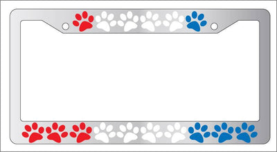 Chrome License Plate Frame PUPPY FEET (RED WHITE BLUE) Auto Accessory Mod-GRAPH9856236-6775