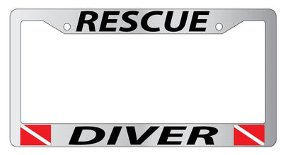 Chrome License Plate Frame RESCUE DIVER w/FLAGS Auto Accessory Mod-GRAPH9856236-4370