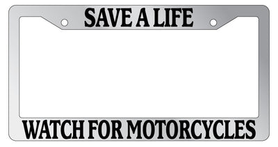 Chrome License Plate Frame Save A Life Watch For Motorcycles Auto Accessory Mod-GRAPH9856236-6710