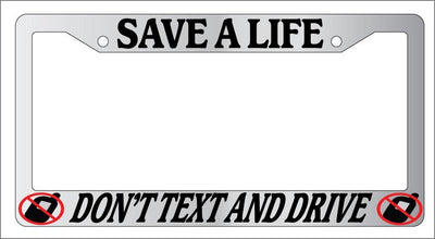 Chrome License Plate Frame Save A Life Don't Text And Drive Auto Accessory Mod-GRAPH9856236-6131