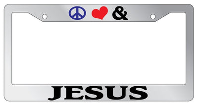Chrome License Plate Frame Peace Love And Jesus Auto Accessory Christian 2166 Mod-GRAPH9856236-5399