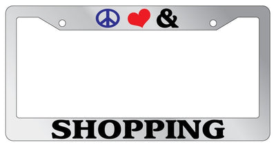 Chrome License Plate Frame Peace Love And Shopping Auto Accessory Novelty Mod-GRAPH9856236-5400