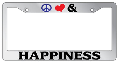 Chrome License Plate Frame Peace Love And Happiness Auto Accessory 826 Mod-GRAPH9856236-5398