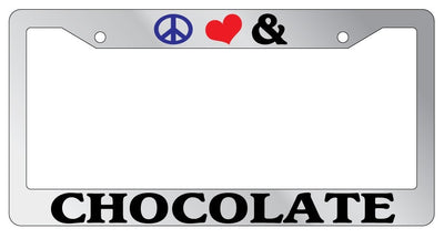 Chrome License Plate Frame Peace Love And Chocolate Auto Accessory Novelty Mod-GRAPH9856236-5387