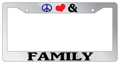 Chrome License Plate Frame Peace Love And Family Auto Accessory 764 Mod-GRAPH9856236-5392