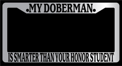 Chrome License Plate Frame My Doberman Is Smarter Than Your Honor Student 380 Mod-GRAPH9856236-4661