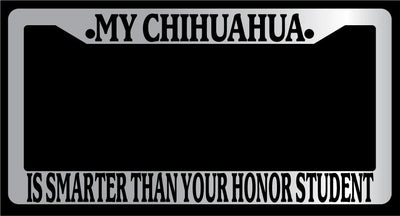 Chrome License Plate Frame My Chihuahua Is Smarter Than Your Honor Student -334 Mod-GRAPH9856236-4874