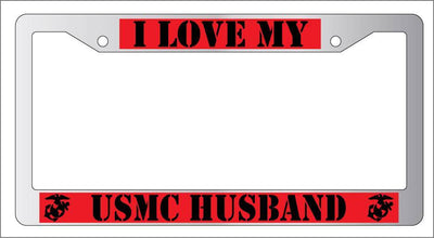 Chrome License Plate Frame I LOVE MY USMC HUSBAND (red) Auto Accessory Mod-GRAPH9856236-6601