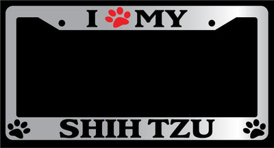 Chrome License Plate Frame I Heart My Shih Tzu (Paw) Auto Accessory Novelty Mod-GRAPH9856236-4945